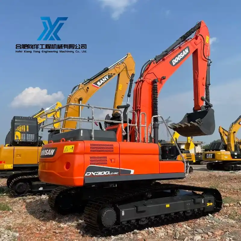 Escavadeira de esteiras Doosan DX300LC-9C, modelo popular e durável, para construção civil.